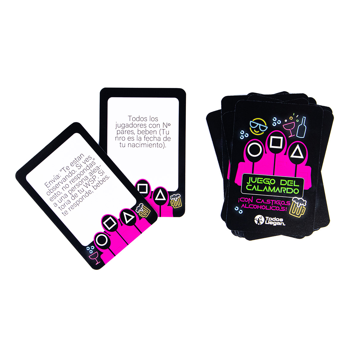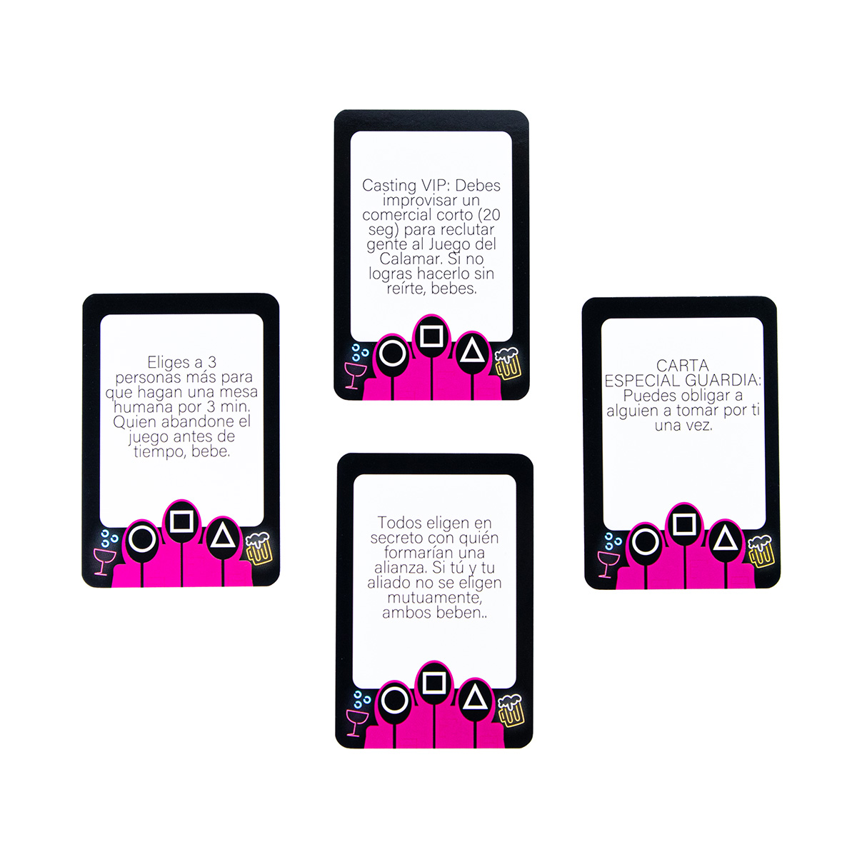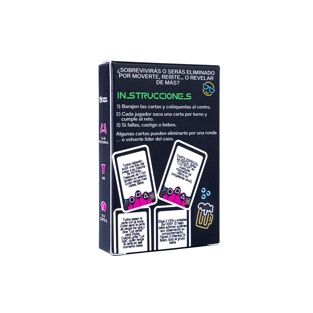 - Cada jugador saca una carta por turno y cumple el reto.